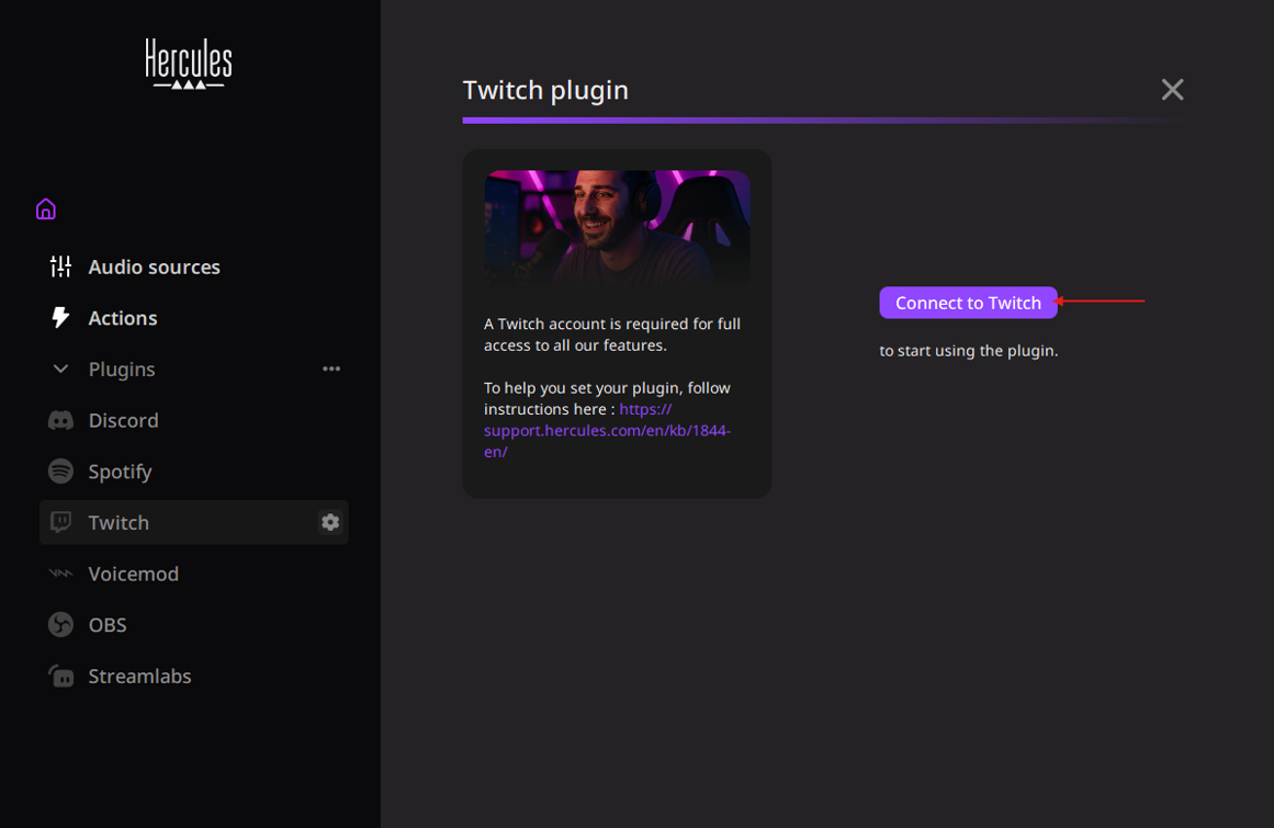 1. On the Twitch settings page, click the « Connect to Twitch » button. (Make sure that you are already connected on twitch)