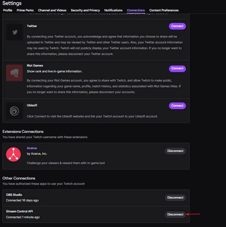 5. You can also disconnect from Twitch by pressing “Disconnect” on Stream Control