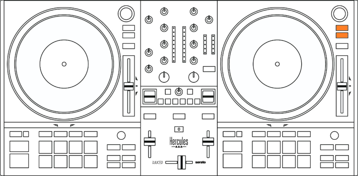 Placez le DJControl Inpulse T7 sur une surface plane et stable (table, bureau) avec les quatre pieds déployés.